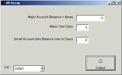 AR Recap screen shows the balances of Major Accounts and Small Accounts; and it also displays over 90 days balances of the accounts.
