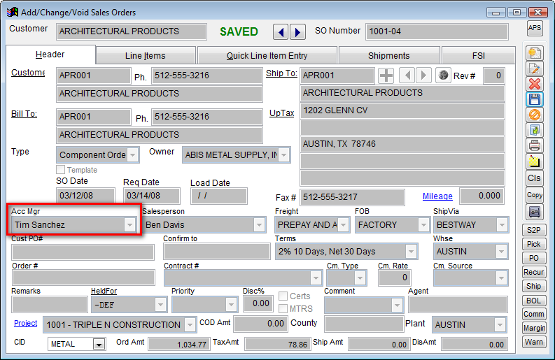 6. Account Manager - The Account Manager on the SO may have a GL Group attached to him/her.