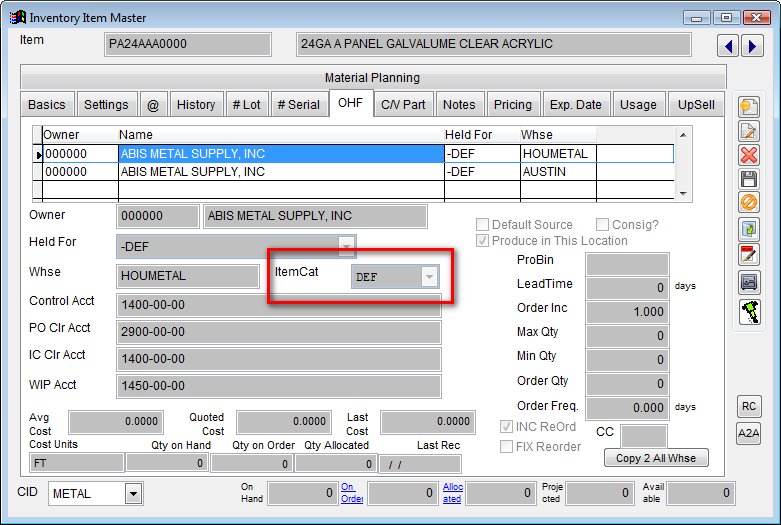The ItemCat and CustCat are combined to create a Transaction Category. The Transaction Category provides the starting point for the Revenue and COGS accounts. These accounts will be overridden by GL Groups attached to the last 7 factors.
