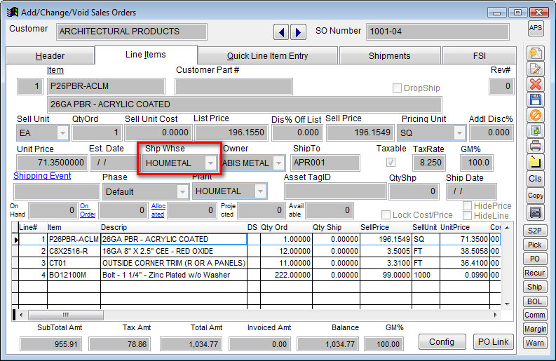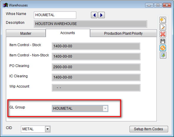 4. Warehouse - The Shipping Warehouse of each line item may have a GL Group attached to it.