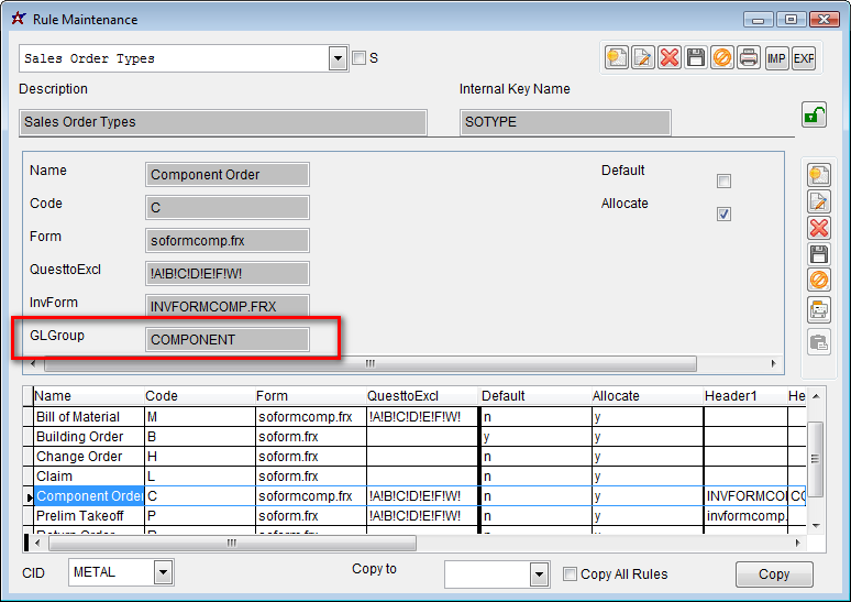 3. Sales Order Type - The Sales Order Type (SOTYPE) may have a GL Group attached to it.