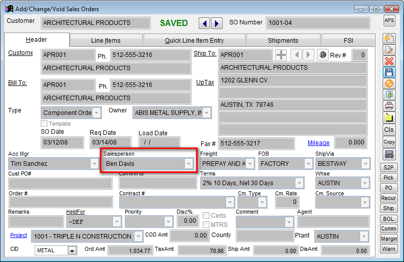 7. Salesperson - The Salesperson on the SO may have a GL Group attached to him/her.