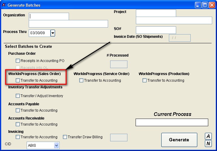 The Batch Generator can make several batch journal entries. One of the options is the batch for Invoicing (Sales Order shipment or Time Entry billing).