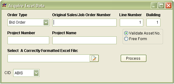 Function Imports a standardized Excel spreadsheet into Adjutant as a sales order. Items with existing cross references are displayed in green, unmatched items are reddish. Click here for a screenshot. Selecting the green disk saves the cross references made during the session. Selecting the blue disk creates the sales order if all items have a matching cross reference.