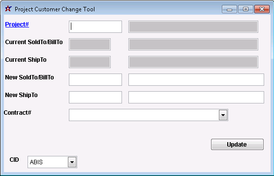 Project# Enter the Project ID in the open text box. The current customer will then populate the next two lines