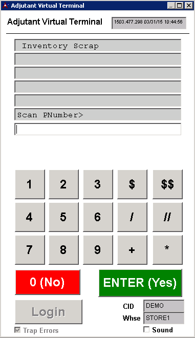2. Next screen will tell you Lot# and Qty of item. Enter Y to scrap or N to not scrap.