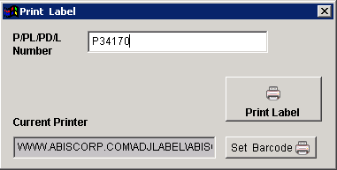 The Print Inventory Label screen allows users to print individual inventory label using the P number of an item.