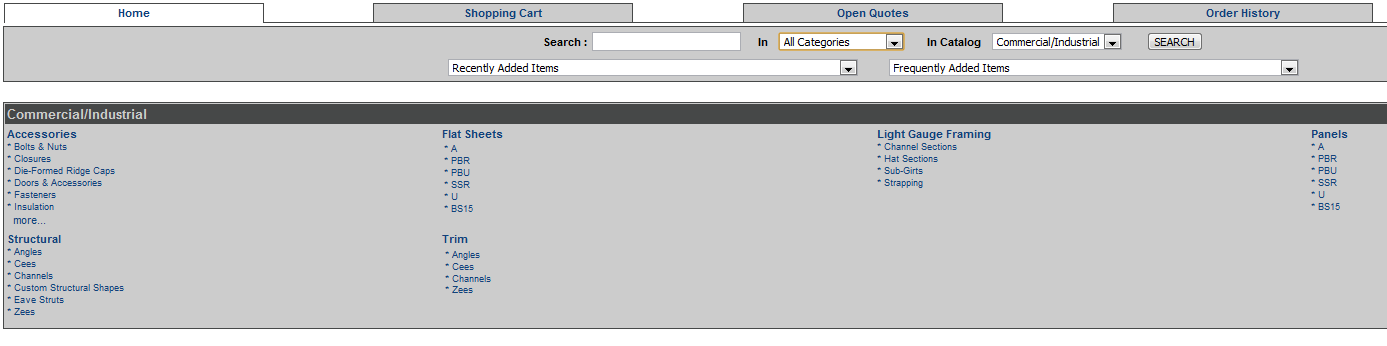 In each Catalog the Category's and the type of items in that Category are shown in the box below the search criteria.