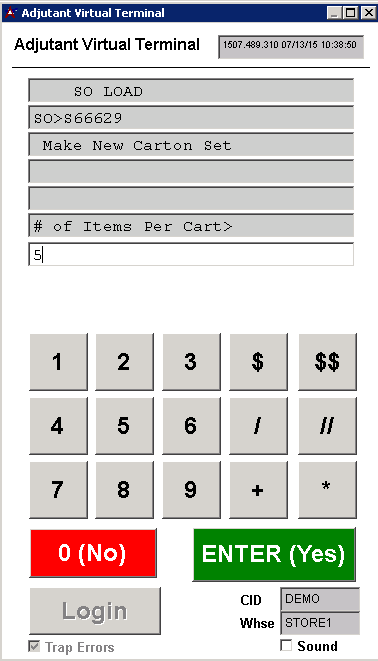 2. From here there are 3 options: Enter a pre-existing carton, enter + to create a carton, or enter * to put multiple items of the same L number together.