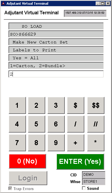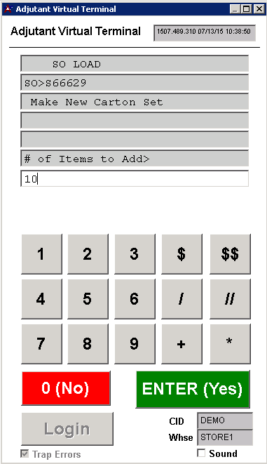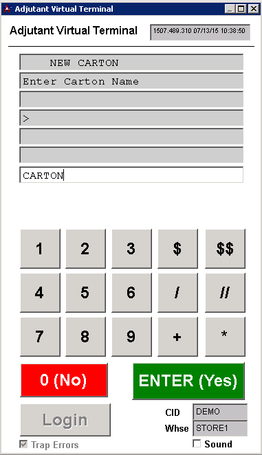 The next screens will act as if you are creating a new carton. If you are, follow the create carton steps above. If not, press enter on those screens and you will be prompted to load next item.