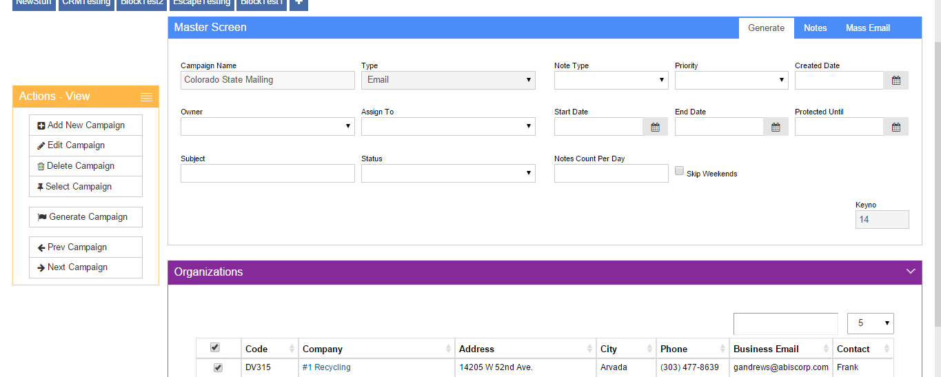 Campaign Master Screen |