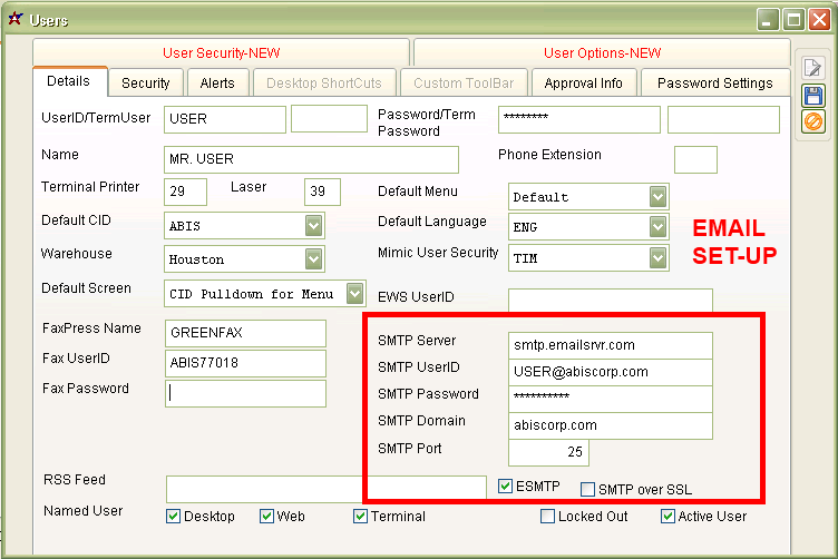 4. Fill out the SMTP Server/UserID/Password/Domain and Port