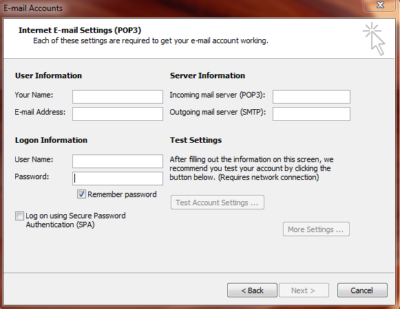 Contact your server administrator for server information. For Microsoft Outlook that already runs off on the desktop open the Internet Email Settings (POP3) screen for the server details