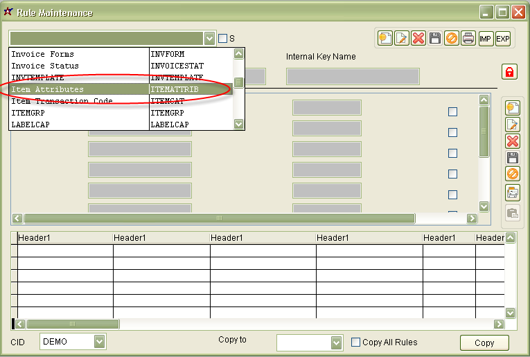 Rule Maintenance screen under Item Attributes.
