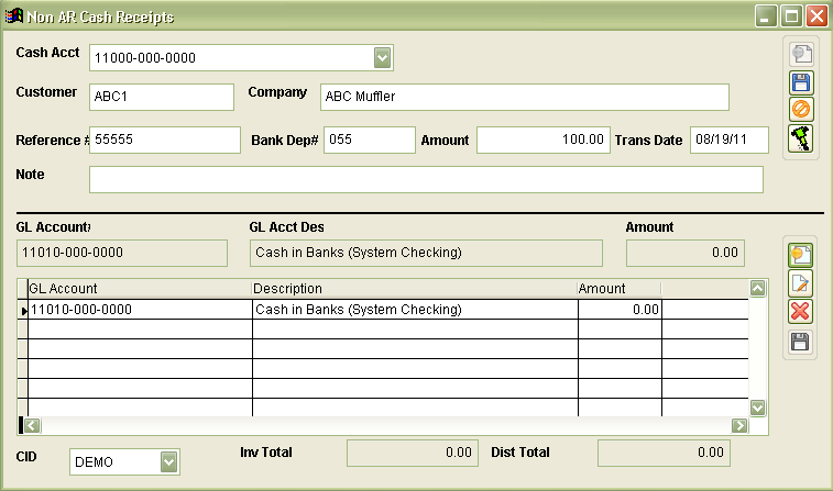Non-AR Cash Receipts Screem