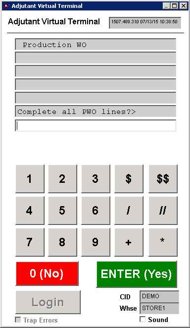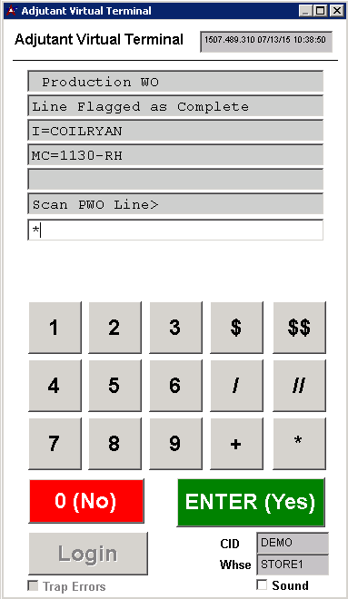 If the scan is valid, it will ask to complete all PWO lines, hit enter or "Y" to complete.