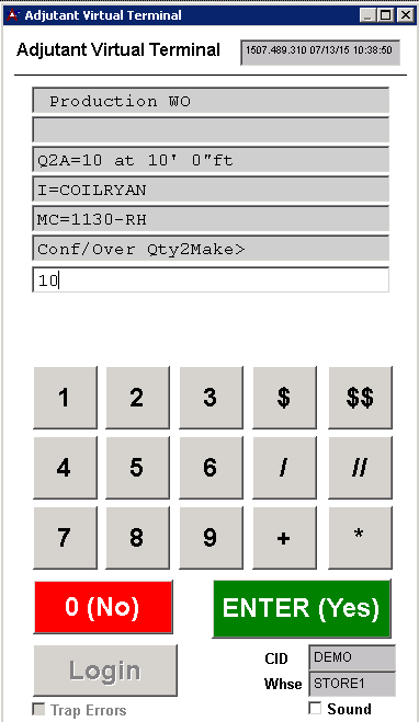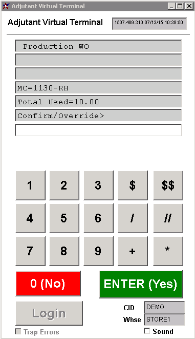 4. The terminal will assemble the line item and ask to confirm/override how much material was used. Push enter if the number is correct, or enter in the actual amount used if it is different, then hit enter.
