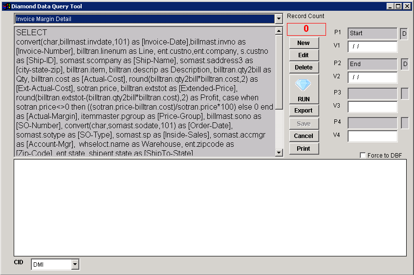 Function The Diamond Data Query Tool is used to create and run SQL queries that are specific to a company's business process.