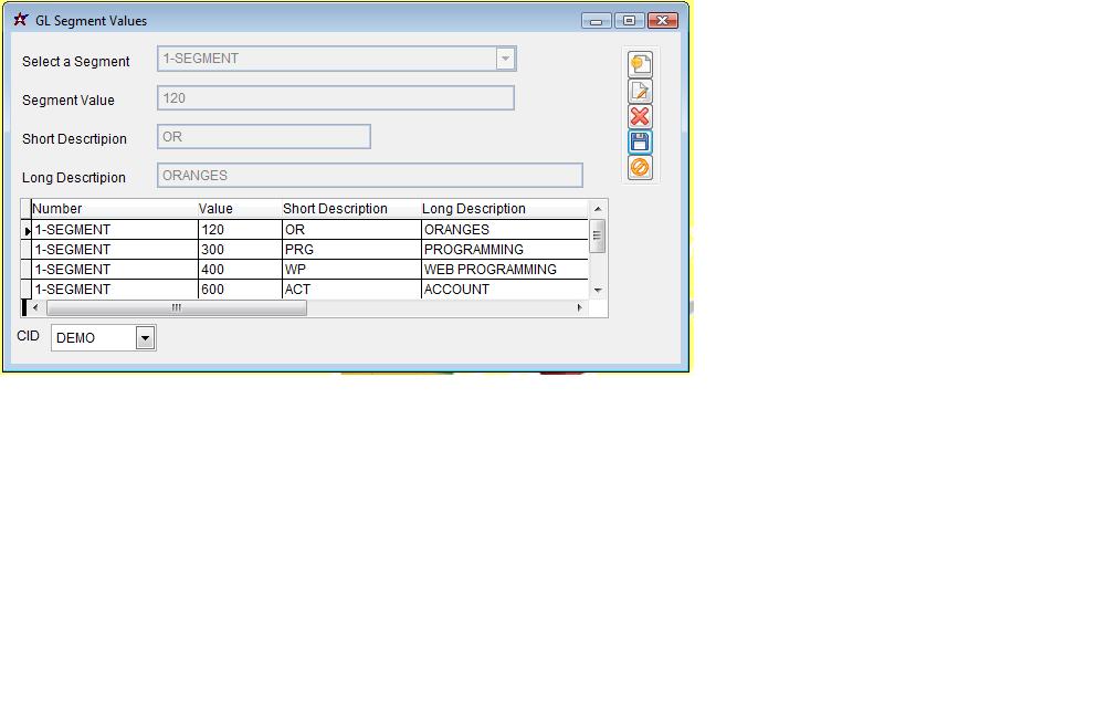 Maintain >> General Ledger >> GL Segment Values