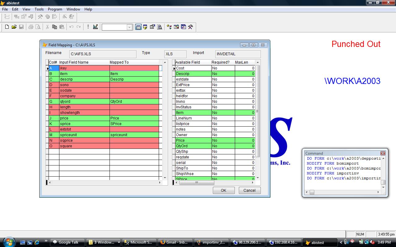 This screen imports an Excel file (XLS) into Adjutant to load the invoice tables.