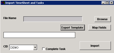 Function: The Task/Time Import function allows you to import and complete new tasks with time entries attached to them.